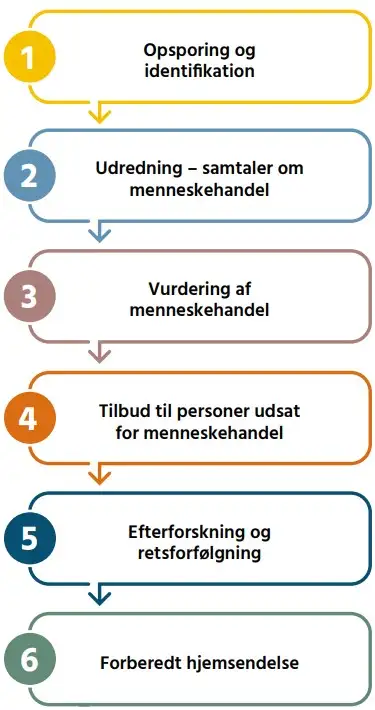 Internationalt bliver procedurer for indsatser mod menneskehandel kaldt ’National Referral Mechanism’. Vi har valgt at bruge betegnelsen ’nationale retningslinjer’.